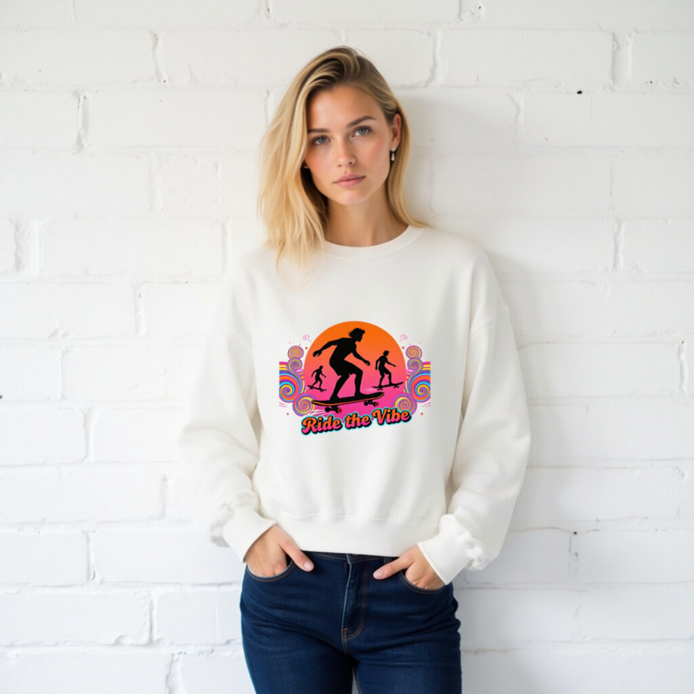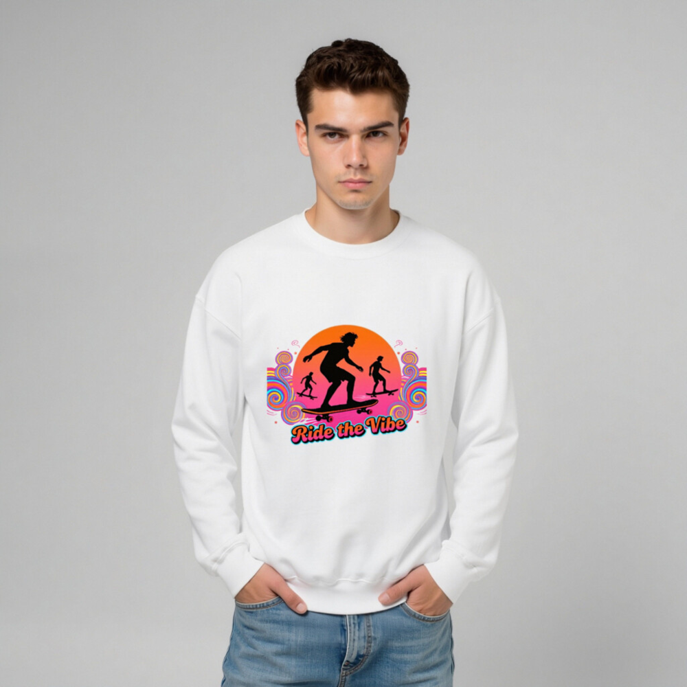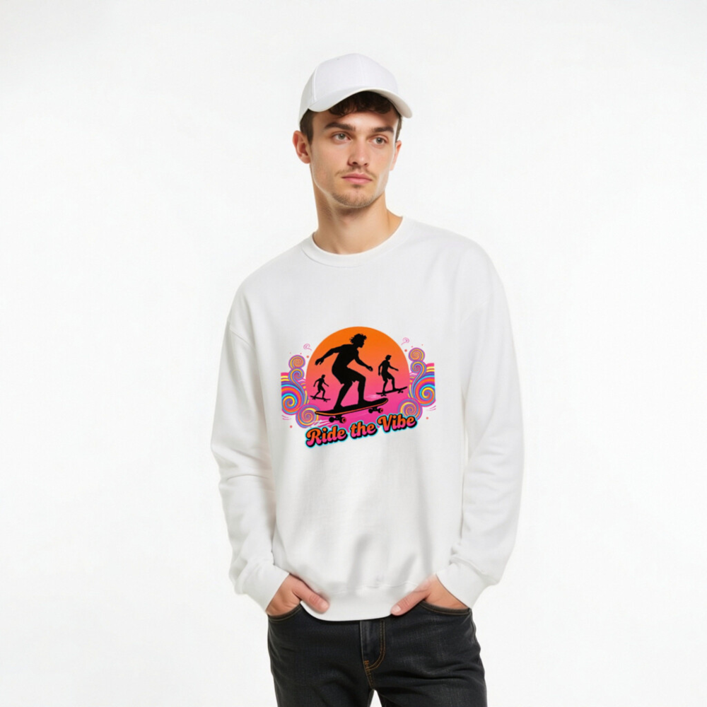 Unisex Crew Neck Sweatshirt | Ride the Vibe Skateboard Graphic – Soft Comfort Fit