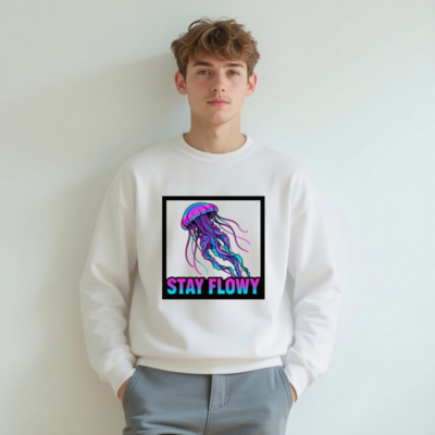 Unisex Crew Neck Sweatshirt | Stay Flowy Jellyfish Graphic – Soft Comfort Fit