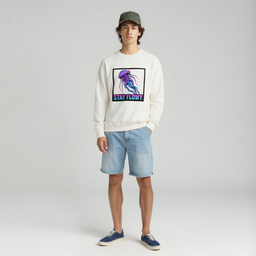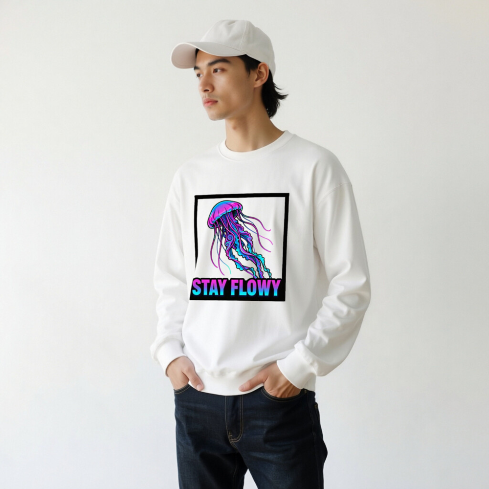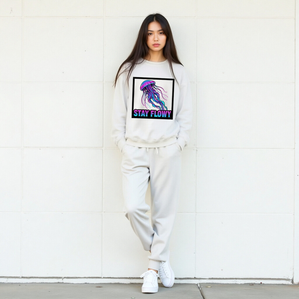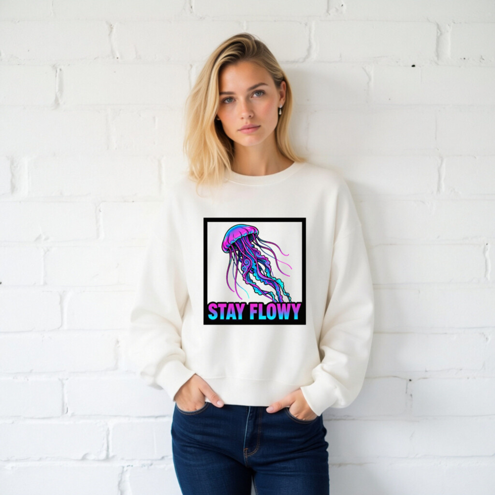 Unisex Crew Neck Sweatshirt | Stay Flowy Jellyfish Graphic – Soft Comfort Fit