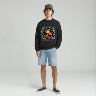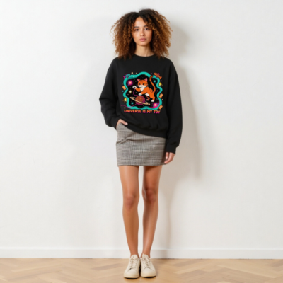 Unisex Crew Neck Sweatshirt – Universe Is My Toy Cat Design, Space Theme