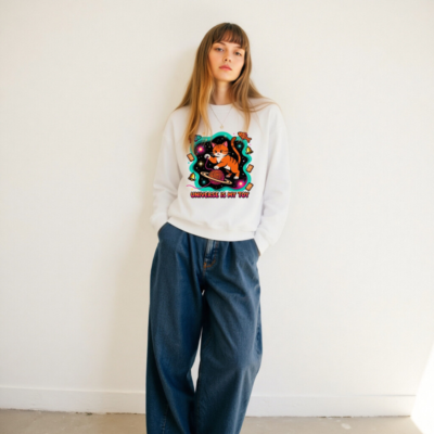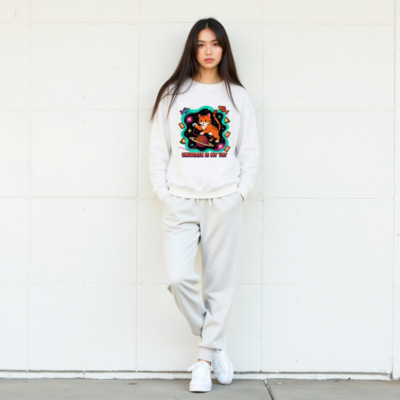 Unisex Crew Neck Sweatshirt – Universe Is My Toy Cat Design, Space Yarn Ball, Cosmic Fun