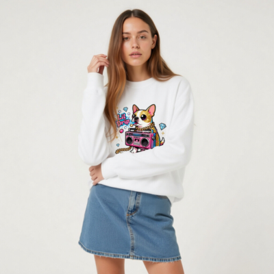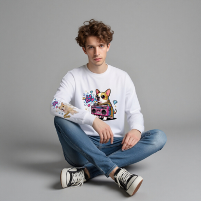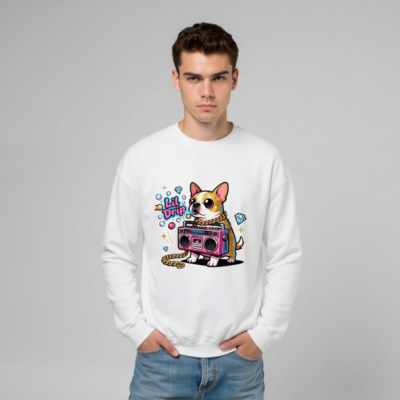 Unisex Crew Neck Sweatshirt with Lil Drip Dog & Boombox Graphic
