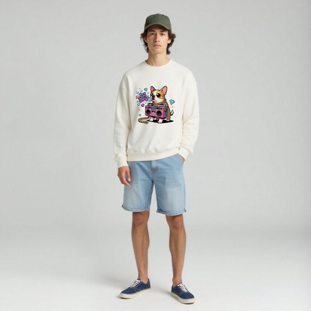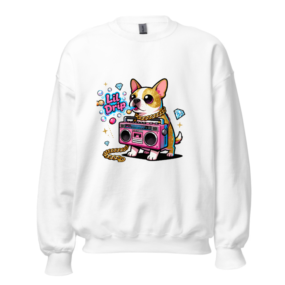 Unisex Crew Neck Sweatshirt with Lil Drip Dog & Boombox Graphic