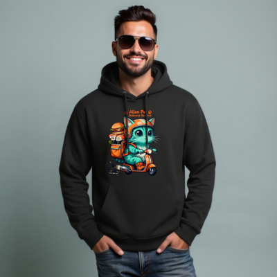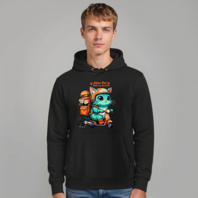 Unisex Eco Hoodie – Alien Pet Delivery Service Cat on Scooter