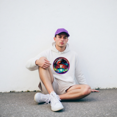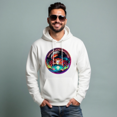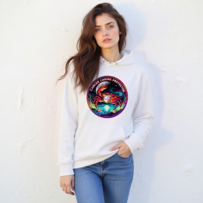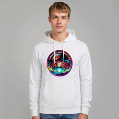 Wear your compassion: This unisex essential eco hoodie features a vibrant, symbolic crab holding a crystal orb under moonlight—embodying the Cancer zodiac’s nurturing spirit. Made with sustainable materials, it’s designed for comfort and purpose. The bold ‘Cancer Caring Protector’ text circles the artwork, blending astrology, art, and advocacy. Perfect for cancer supporters, caregivers, or anyone who values emotional resilience and ethical fashion.