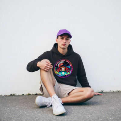 Wear the Cancer zodiac symbol with pride: a vibrant, cosmic crab holding a crystal orb under moonlight, surrounded by colorful sea life. This unisex essential eco hoodie features sustainable materials and ethical production—designed for comfort, style, and meaning. Perfect for astrology lovers seeking meaningful, earth-conscious apparel.