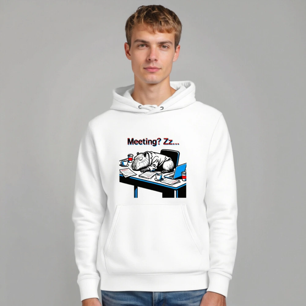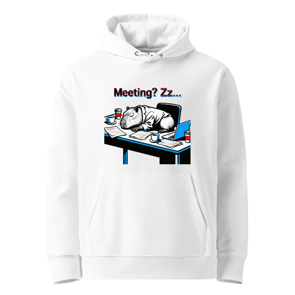 Unisex Eco Hoodie – Capybara Sleeping at Desk, Meeting? Zz… | Sustainable Cotton Blend