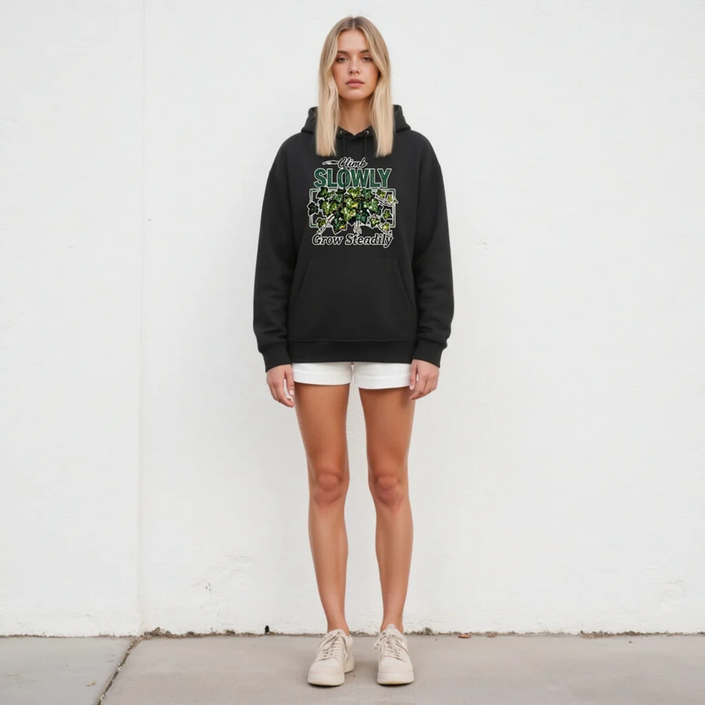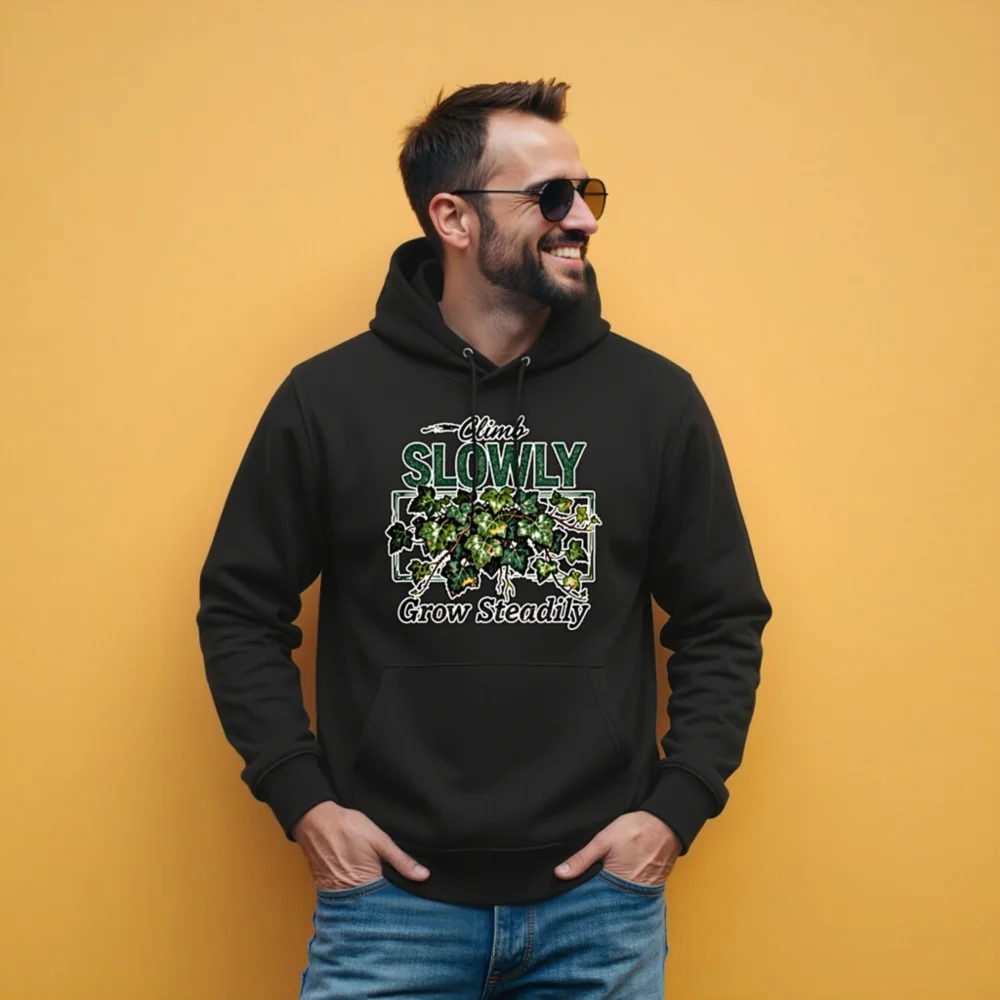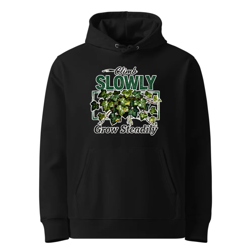 Unisex Eco Hoodie – Climb Slowly, Grow Steadily | Sustainable Cotton Blend