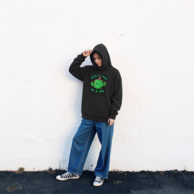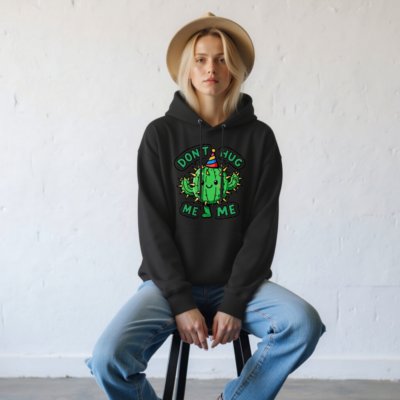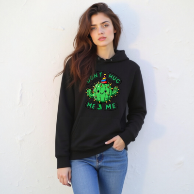 Show off your spiky sense of humor with this unisex eco hoodie featuring a cheerful cactus in a party hat and the playful phrase ‘Don’t Hug Me, I’m a Cactus!’ Made from sustainable materials, it’s soft, comfortable, and perfect for casual wear. Ideal for plant lovers and anyone who appreciates witty, kawaii-inspired designs. Lightweight, hooded, with front pocket and ribbed cuffs. Eco-friendly choice for everyday style.