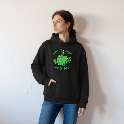 Unisex Eco Hoodie – Don’t Hug Me, I’m a Cactus! Funny Sustainable Sweatshirt