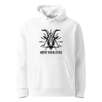 Unisex Eco Hoodie – Goat Head with Third Eye & Knives, Open Your Eyes