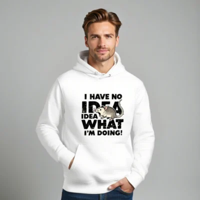Wear your ‘I have no idea what I’m doing!’ vibe with this unisex essential eco hoodie. Featuring a playful rat graphic and bold distressed typography, it’s designed for comfort and style. Made with sustainable materials for everyday wear. Perfect for those who embrace the chaos with humor. Shop eco-friendly fashion that speaks your truth.
