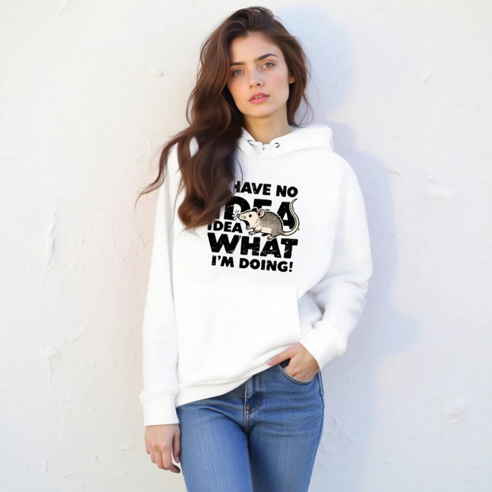 Wear your ‘I have no idea what I’m doing!’ vibe with this unisex essential eco hoodie. Featuring a playful rat graphic and bold distressed typography, it’s designed for comfort and style. Made with sustainable materials for everyday wear. Perfect for those who embrace the chaos with humor. Shop eco-friendly fashion that speaks your truth.