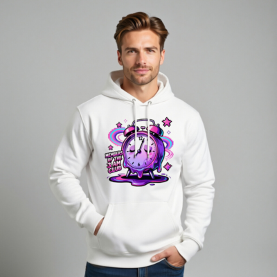 Wear your late-night spirit with this unisex eco hoodie featuring a vibrant, melting alarm clock design—’Members of the 3AM Club’—in dreamy purple-pink gradients. Made from sustainable materials, it’s soft, comfortable, and perfect for night owls. The bold graphic includes glowing stars and cosmic swirls, capturing that sleepy, surreal early-morning vibe. Ideal for casual wear, gifting, or expressing your love for the hours when the world sleeps.