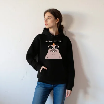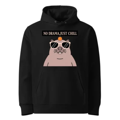 This unisex essential eco hoodie features a playful gopher wearing sunglasses with an orange on its head, paired with the chill mantra ‘NO DRAMA, JUST CHILL’. Made from sustainable materials for comfort and conscience. Soft, relaxed fit—perfect for everyday wear. Designed for those who value style, sustainability, and a laid-back vibe.