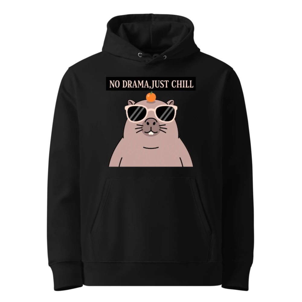 Unisex Eco Hoodie – No Drama, Just Chill Gopher Graphic | Sustainable Soft Sweatshirt