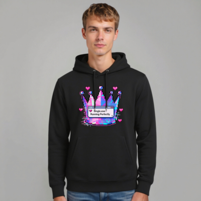 This unisex essential eco hoodie features a vibrant pixel-art crown with glitch effects and a nostalgic ‘Single.exe Running Perfectly’ system message—perfect for digital natives. Made with eco-friendly materials, it’s designed for comfort, sustainability, and bold self-expression. Ideal for everyday wear, gaming fans, and tech lovers who appreciate retro-futuristic aesthetics.