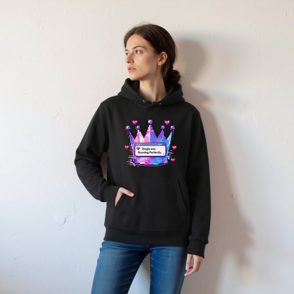 Unisex Eco Hoodie | Pixel Crown & Single.exe Running Perfectly Design