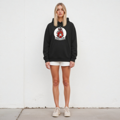 Wear the ‘Riff or Die’ unisex essential eco hoodie — a bold black pullover featuring a striking red electric guitar engulfed in flames, adorned with horns, chain, and skull. Crafted for comfort and style, this sustainable hoodie combines rock-inspired art with everyday wear. Perfect for music lovers seeking statement pieces that align with eco-conscious values. Durable, soft, and designed to last.