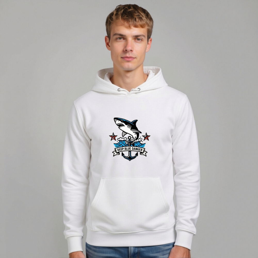Unisex Eco Hoodie – Shark & Anchor ‘Deep Blue Danger’ Design