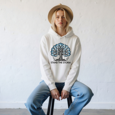 Wear resilience with our Unisex Essential Eco Hoodie—featuring the iconic ‘Stand the Storm’ tree design in blue and gray. Made from sustainable cotton blend, this comfortable, gender-neutral hoodie supports eco-conscious style. The bold graphic and meaningful slogan inspire strength and environmental awareness. Soft, durable, and designed for everyday wear—ideal for those who value both comfort and purpose.