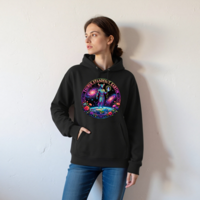 Wear the cosmic power of Taurus with this unisex eco hoodie featuring a vibrant, celestial bull standing atop Earth amid galaxies and floral wreath. Made with sustainable materials for comfort and conscience. Perfect for astrology lovers, earth guardians, and cosmic fashion enthusiasts seeking steady energy and ethical style.