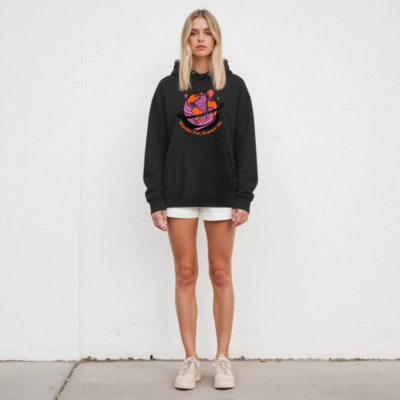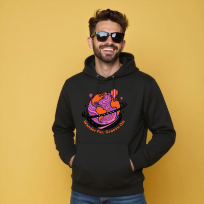 Wear our Unisex Essential Eco Hoodie—crafted for comfort and conscience. Featuring a vibrant ‘Wander Far, Groove On’ globe design with hot air balloons and psychedelic swirls, this sustainable hoodie combines bold artistry with everyday ease. Made from eco-conscious materials, it’s designed for conscious travelers who value style and sustainability. Perfect for gifting or self-care.