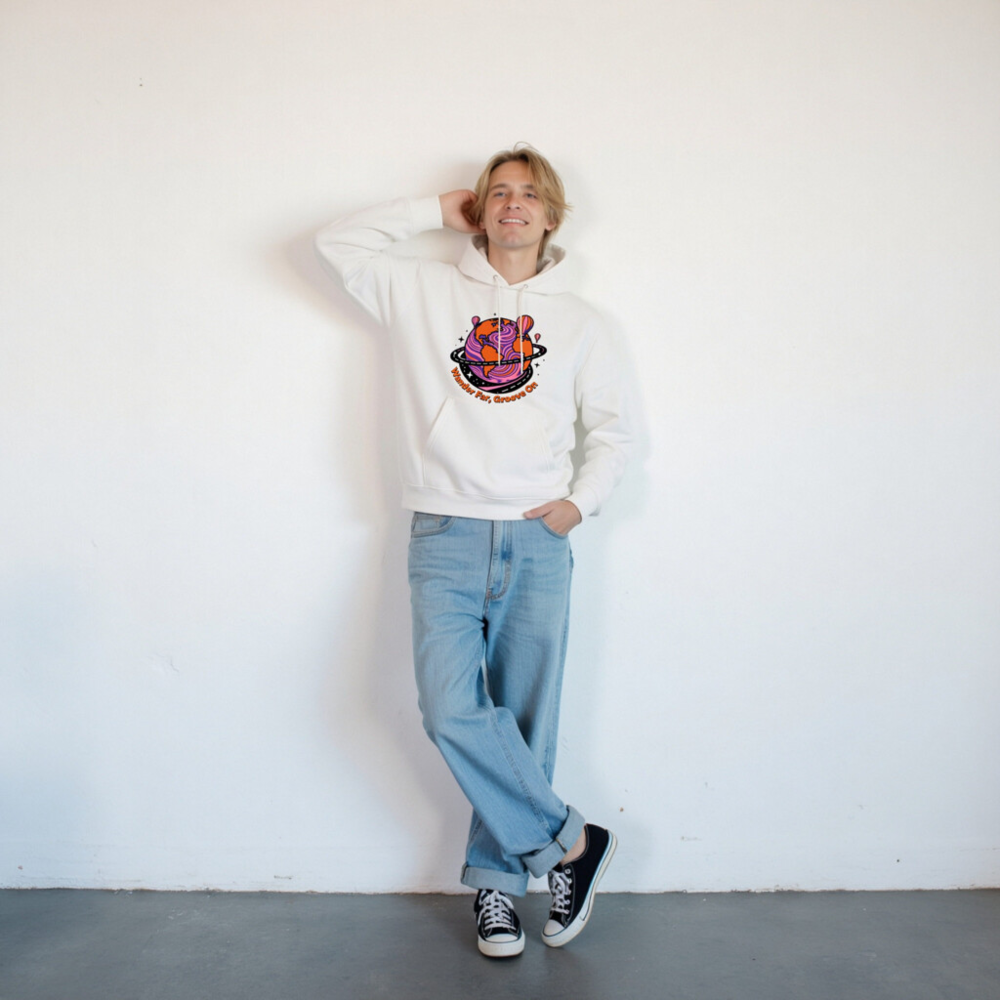 Unisex Eco Hoodie – Wander Far, Groove On | Sustainable Essential Sweatshirt