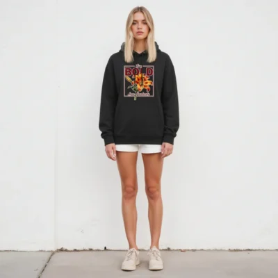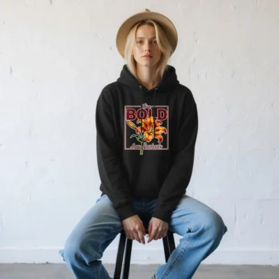 This unisex essential eco hoodie features a vibrant orange lily print with ‘Live Bold, Love Fearlessly’ typography—perfect for expressive, conscious wear. Made from soft, sustainable materials, it offers comfort and durability for everyday use. The classic pullover design includes a front pocket, adjustable drawstring hood, and ribbed cuffs. Ideal for casual outings, layering, or gifting, this hoodie blends bold aesthetics with eco-friendly values. Lightweight yet warm, it’s a versatile staple for all seasons. Embrace confidence and sustainability in one statement piece.