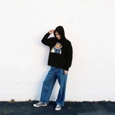 Show off your chill vibe in this unisex essential eco hoodie, featuring a cozy capybara graphic wearing a knitted sweater and pearl necklace. Made with sustainable materials for comfort and conscience. Perfect for casual wear or gifting. ‘The Chillest Club’ branding adds a playful touch to your everyday style.