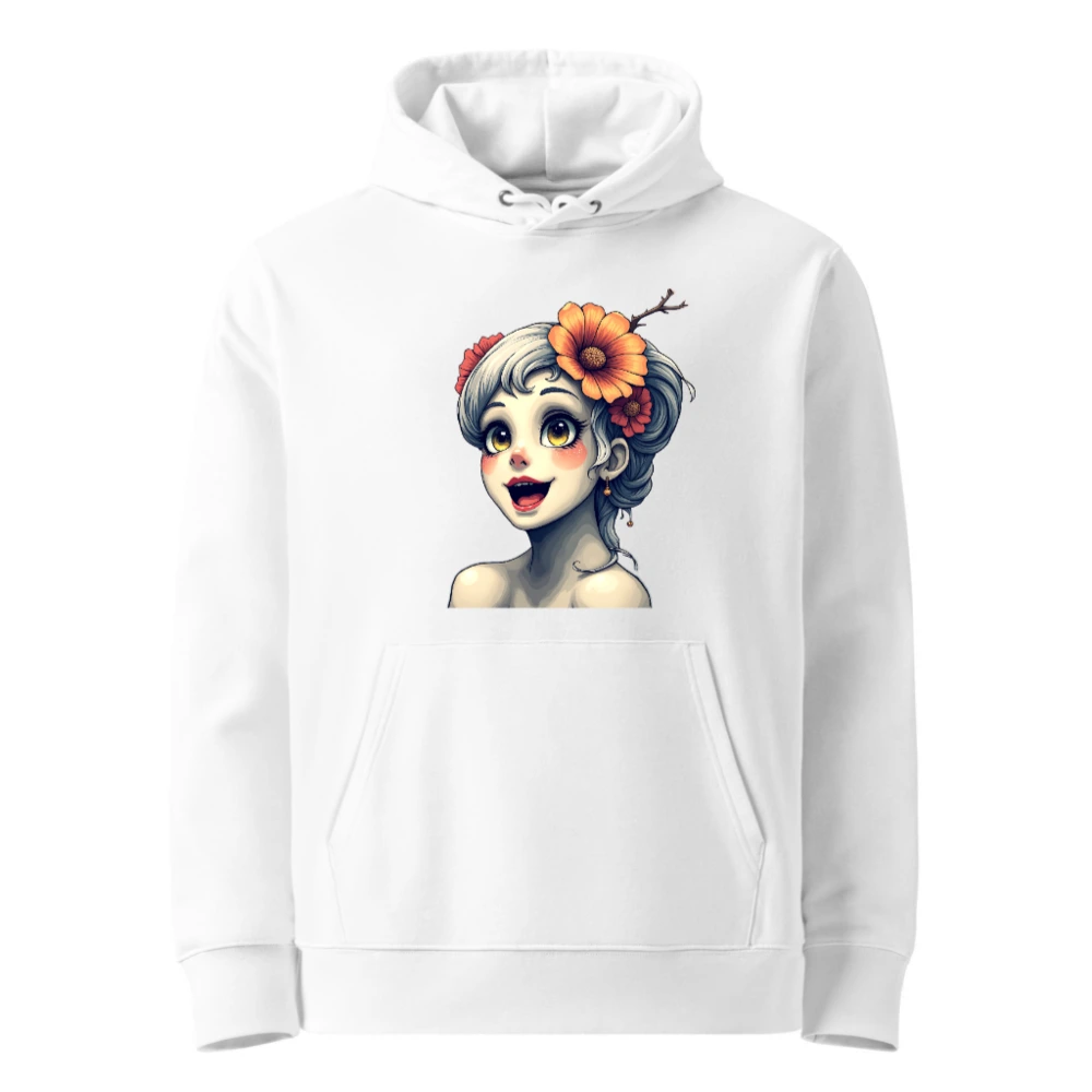 Unisex Eco Hoodie with Floral Girl Art – Sustainable Essential Sweatshirt