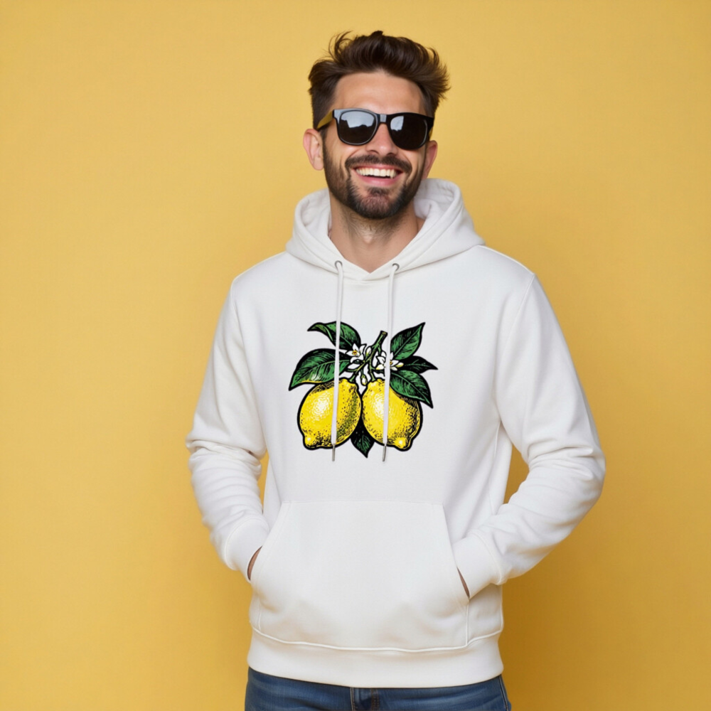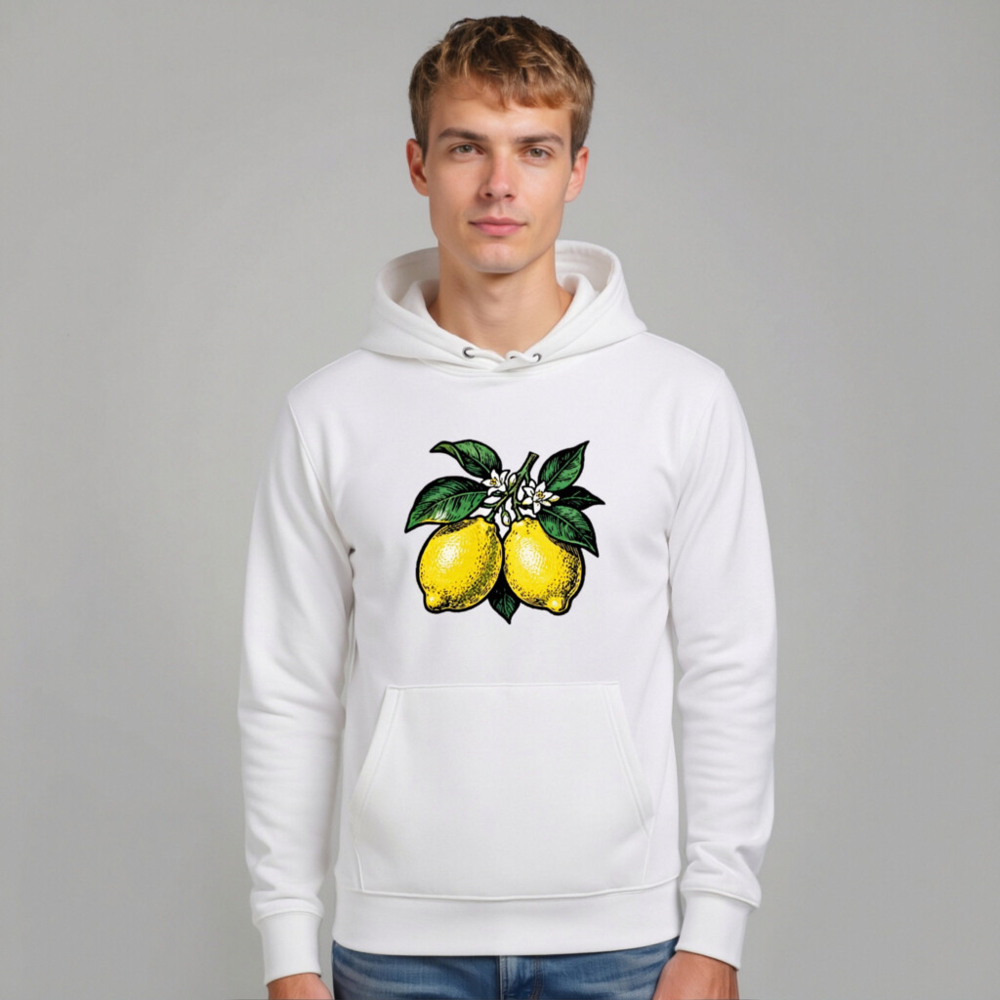 Unisex Eco Hoodie with Lemon Branch Design | Sustainable Essential Sweatshirt