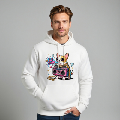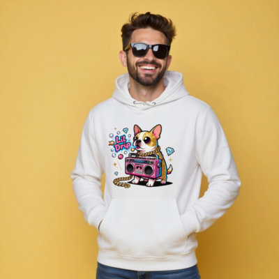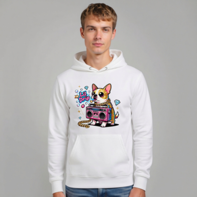 Unisex Eco Hoodie with Lil Drip Dog & Boombox Graphic – Sustainable Casual Wear