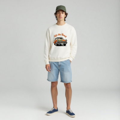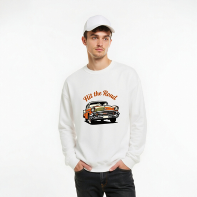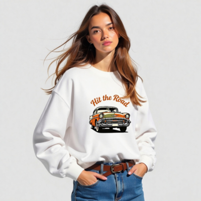 Showcase your love for retro style with this unisex crew neck sweatshirt featuring a vibrant 1957 Chevrolet illustration and ‘Hit the Road’ script. Made from soft, comfortable fabric, it’s ideal for casual wear or road trip enthusiasts. The vintage car design evokes classic American automotive nostalgia—perfect for fans of mid-century styling. Machine washable, durable, and true to size. A stylish tribute to timeless road adventures.