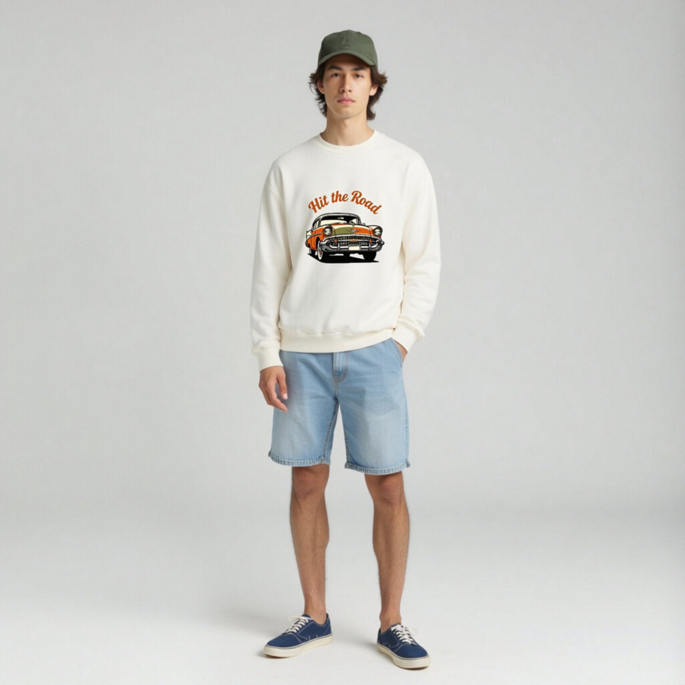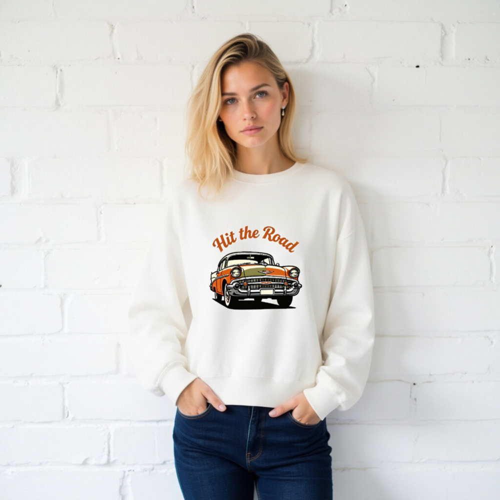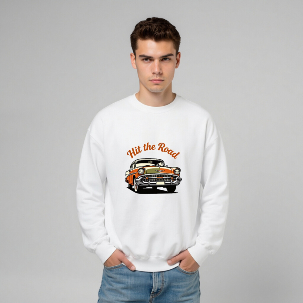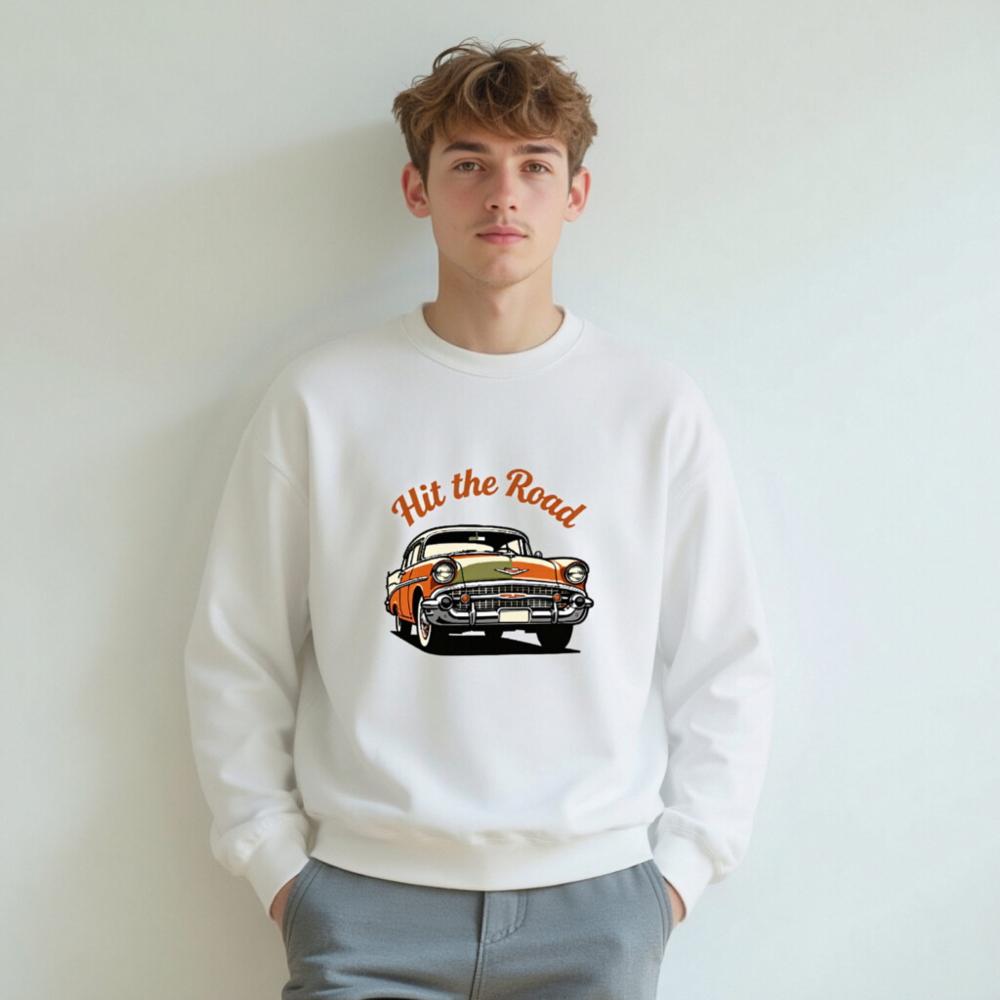 Showcase your love for retro style with this unisex crew neck sweatshirt featuring a vibrant 1957 Chevrolet illustration and ‘Hit the Road’ script. Made from soft, comfortable fabric, it’s ideal for casual wear or road trip enthusiasts. The vintage car design evokes classic American automotive nostalgia—perfect for fans of mid-century styling. Machine washable, durable, and true to size. A stylish tribute to timeless road adventures.