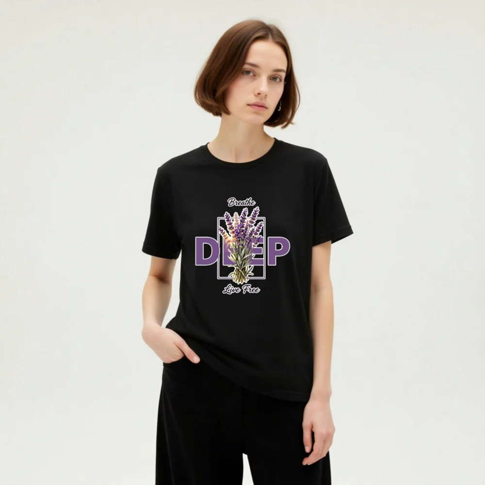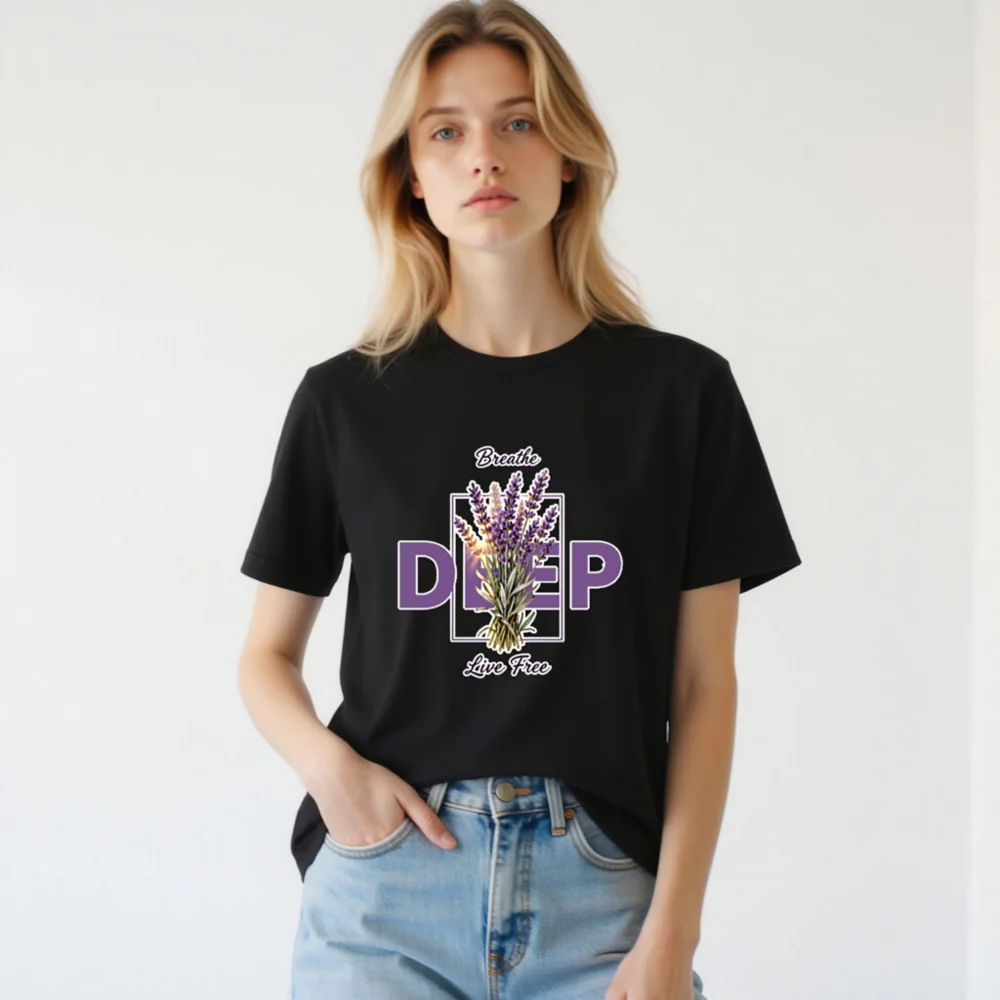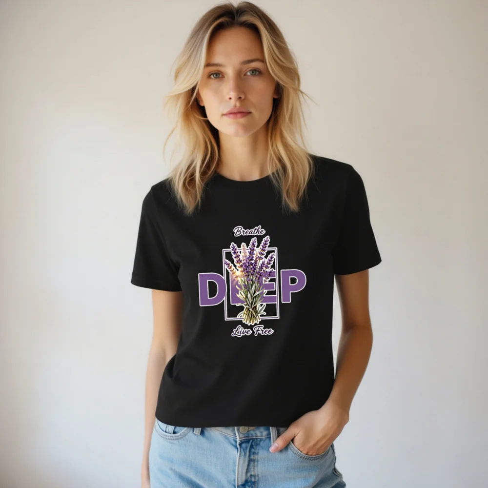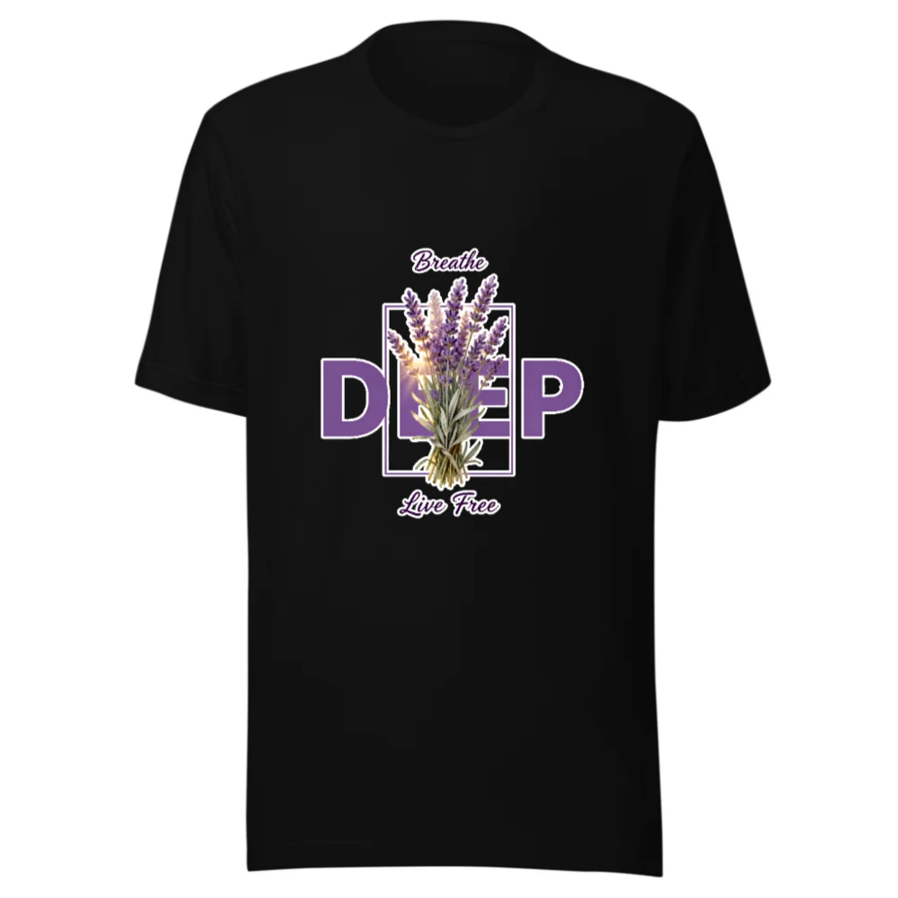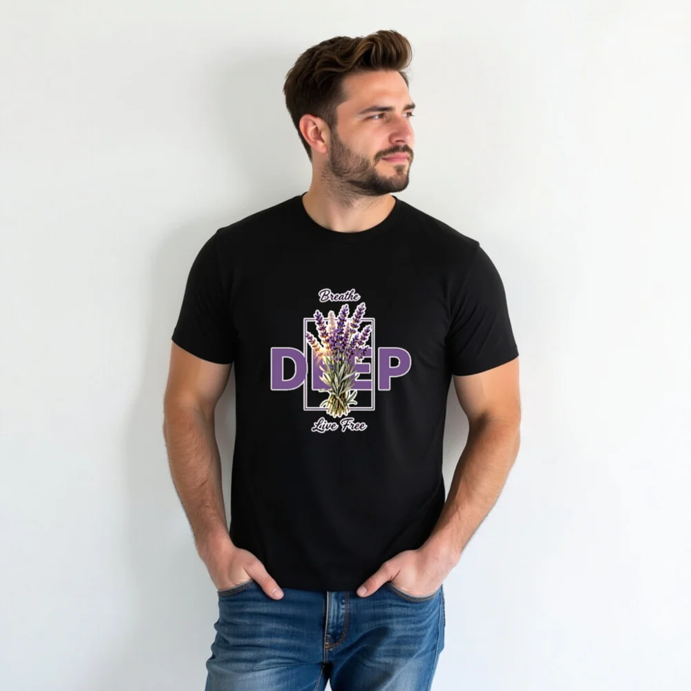 Unisex Lavender ‘Breathe Deep Live Free’ T-Shirt – Soft Cotton Graphic Tee