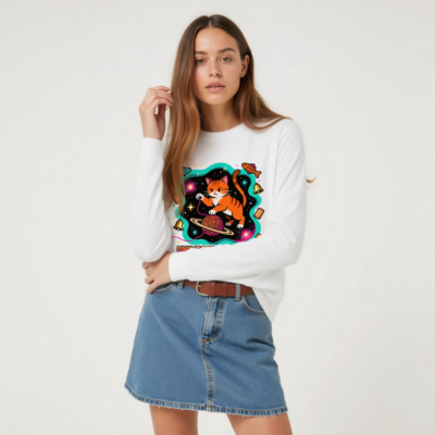 This unisex long sleeve tee features a playful orange tabby cat in space, surrounded by yarn, planets, fish, bells, and treats—capturing the whimsical ‘Universe is My Toy’ theme. Soft cotton blend, comfortable fit for all genders. Ideal for cat lovers and cosmic dreamers. Designed for everyday wear with vibrant, eye-catching print.