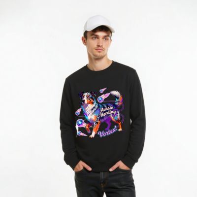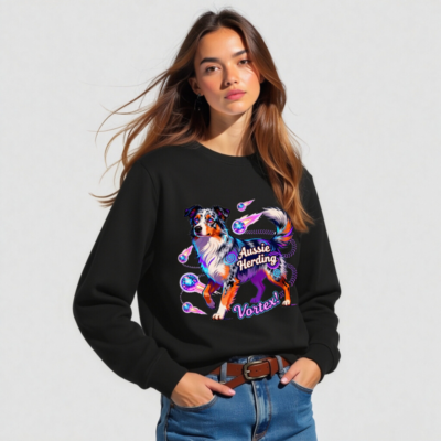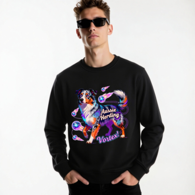 Unisex Organic Aussie Herding Vortex! Sweatshirt – Eco-Friendly, Vibrant Dog Art