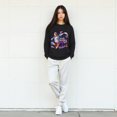 Showcase your love for Aussies with this unisex organic sweatshirt featuring the vibrant ‘Aussie Herding Vortex!’ design — a colorful Australian Shepherd surrounded by neon disco balls and swirling energy. Made from certified organic cotton (verified by standard: GOTS), it’s soft, sustainable, and perfect for dog lovers. Ideal for casual wear, gifts, or matching sets. Comfortable fit, eco-conscious choice — support ethical fashion without compromising style.