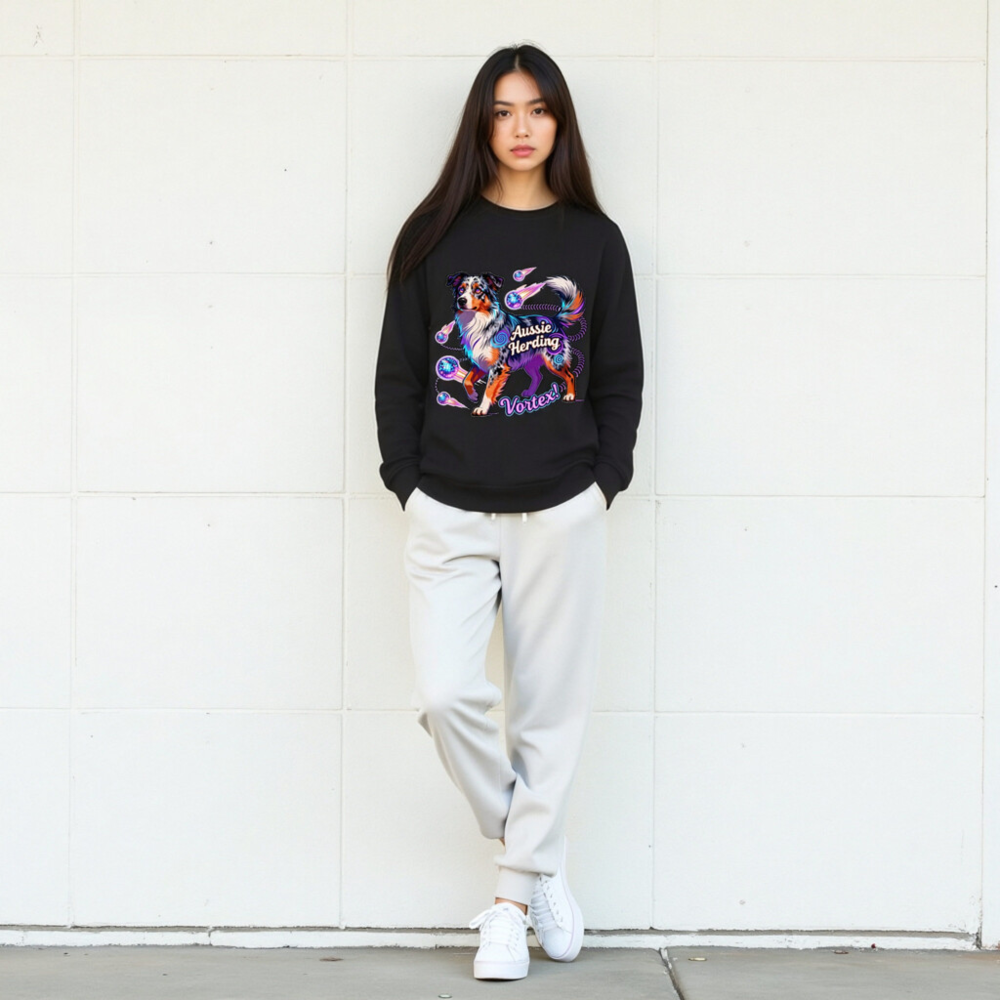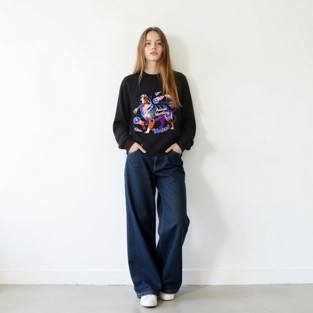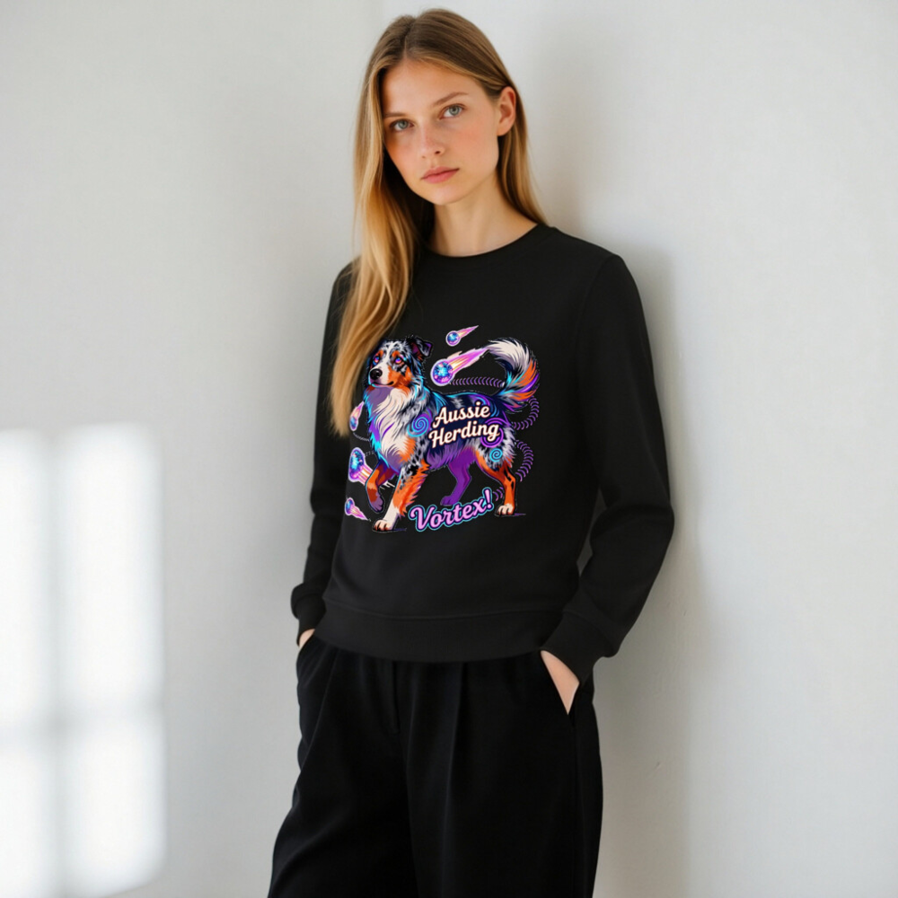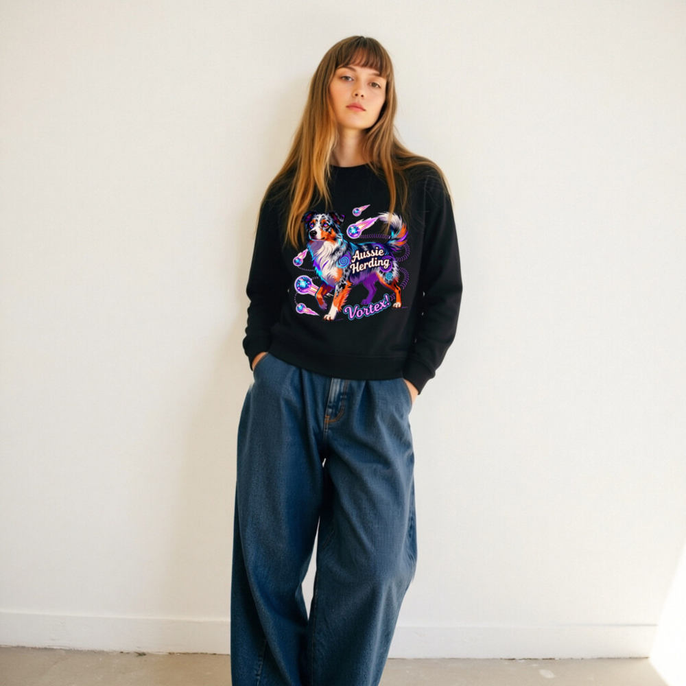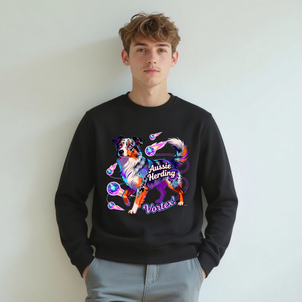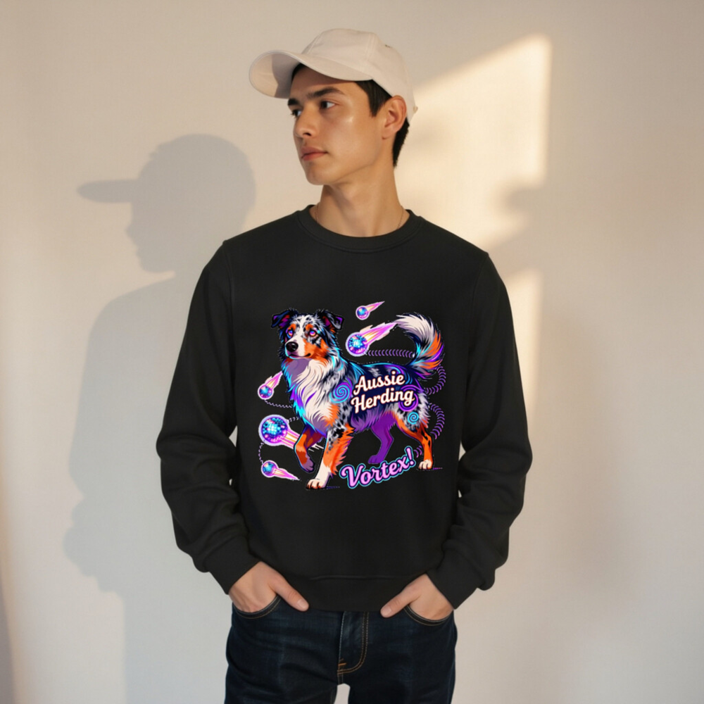 Unisex Organic Aussie Herding Vortex! Sweatshirt – Eco-Friendly, Vibrant Dog Art