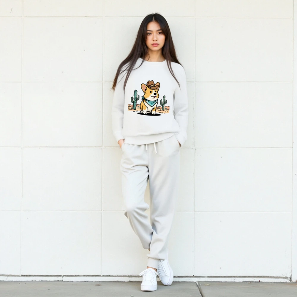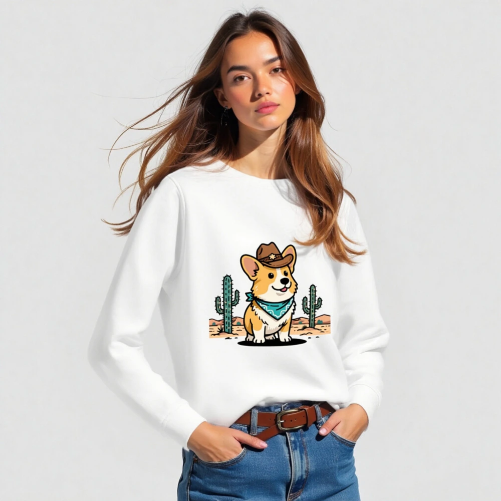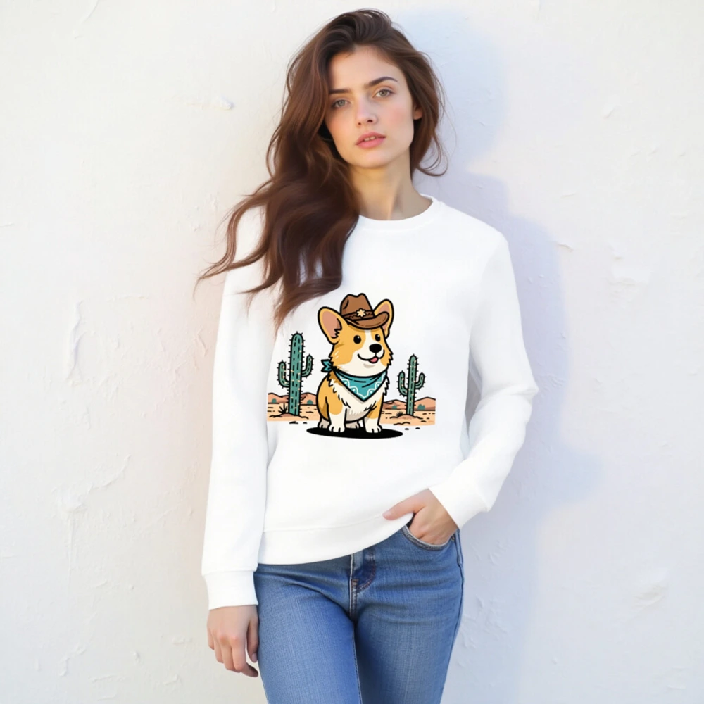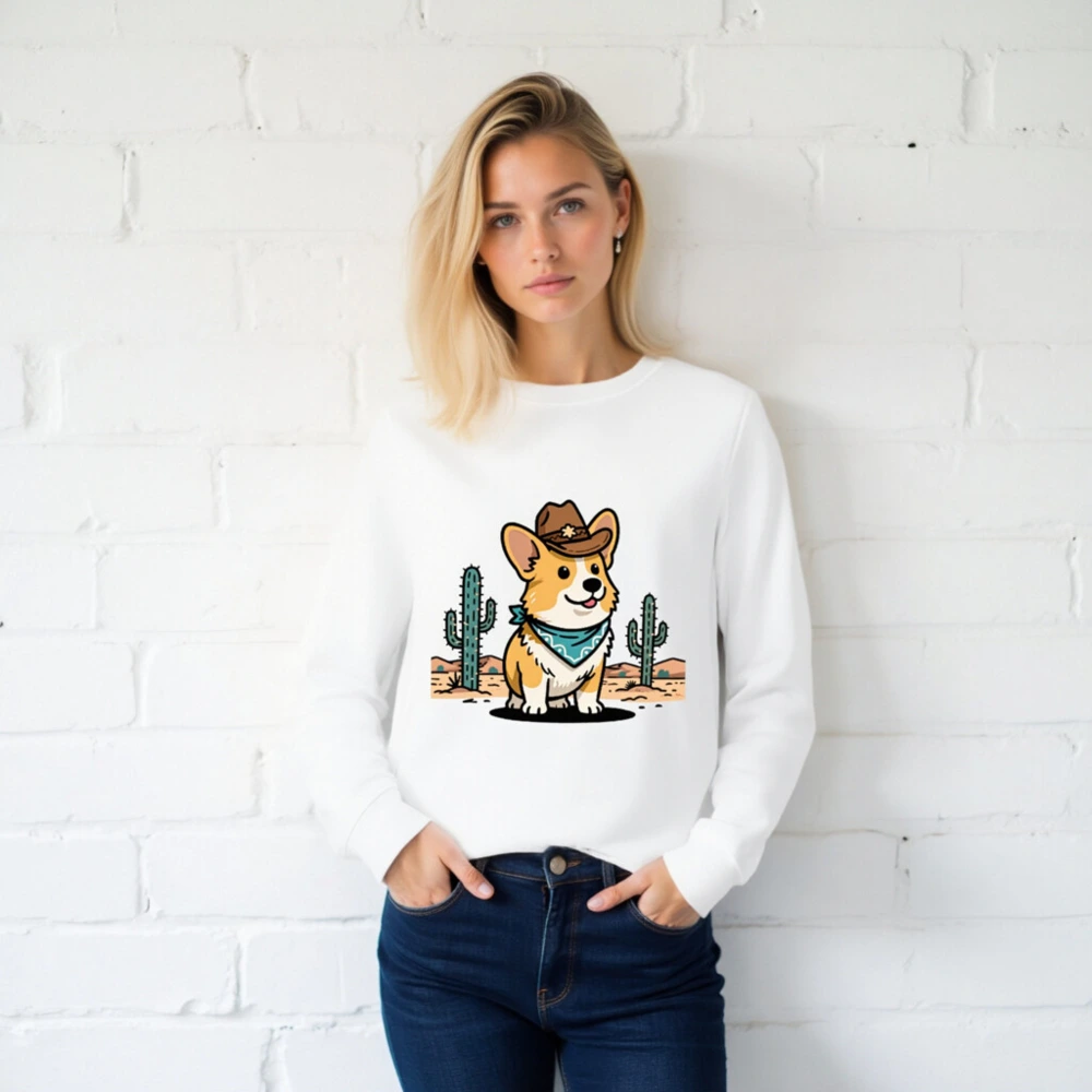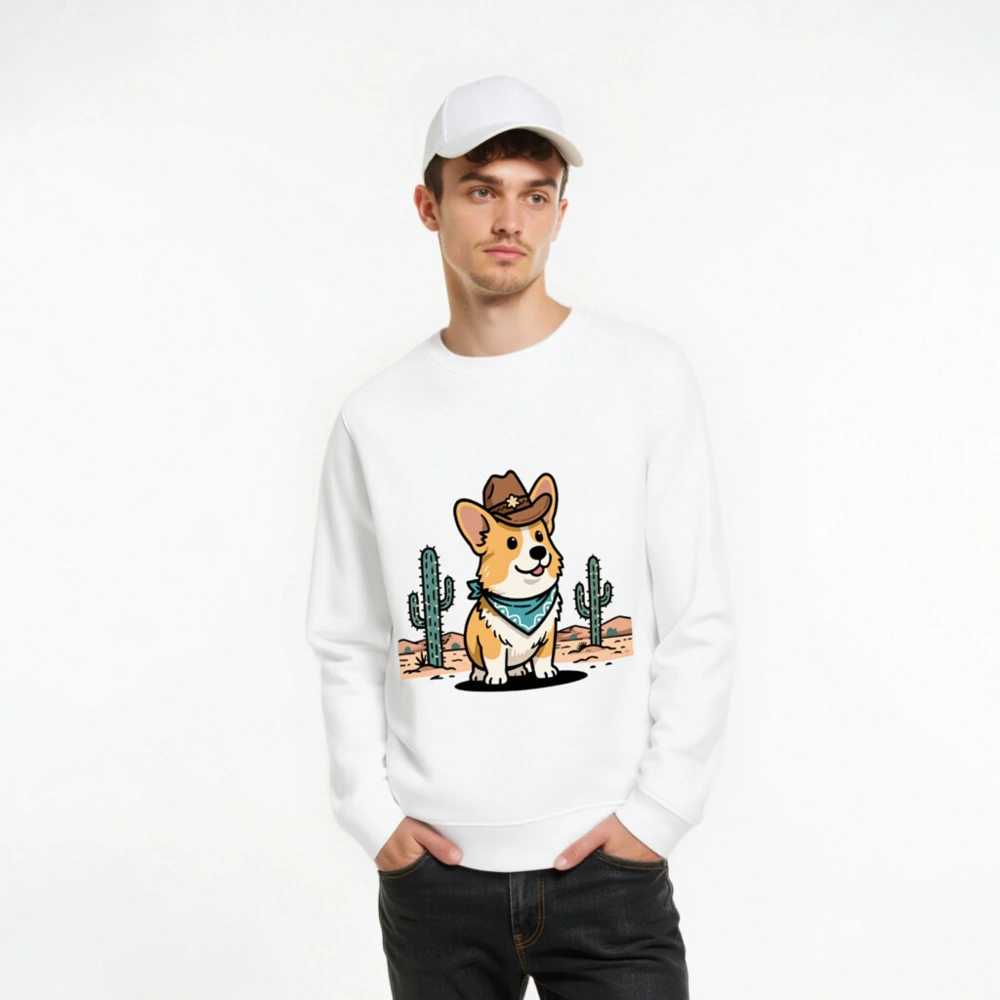 Show your wild side with this unisex organic cotton sweatshirt featuring a charming cowboy corgi in a desert scene—complete with cacti and star-adorned hat. Soft, eco-friendly fabric for comfort and sustainability. Perfect for casual wear or gifting. Designed for all sizes, machine-washable, and ethically made with certified organic cotton.