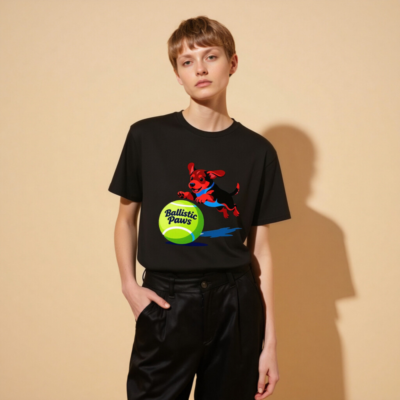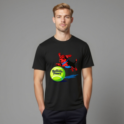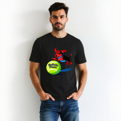 Show off your love for playful pups with this unisex organic cotton t-shirt featuring a vibrant ‘Ballistic Paws’ design—a red-and-black puppy leaping over a tennis ball. Soft, eco-friendly fabric for comfort and sustainability. Perfect for dog lovers seeking fun, casual wear. Machine washable, ethically made, and designed to last.