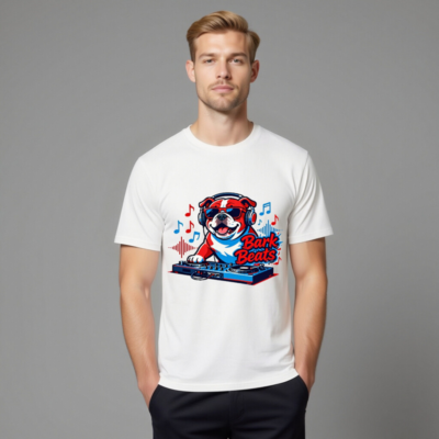 Show off your love for music and pets with this unisex organic cotton t-shirt featuring a vibrant ‘Bark Beats’ DJ bulldog graphic—complete with headphones, sunglasses, and turntables. Made from certified organic cotton for comfort and sustainability. Perfect for music lovers, dog enthusiasts, and casual wear. Designed for all genders, machine washable, and ethically produced.