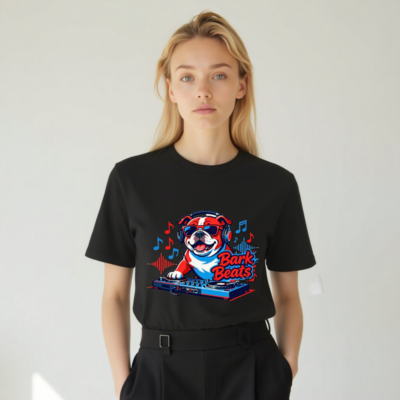 Show off your love for music and pets with this unisex organic cotton t-shirt featuring a vibrant ‘Bark Beats’ DJ bulldog graphic—complete with headphones, turntables, and colorful musical notes. Made from certified organic cotton for comfort and sustainability. Perfect for dog lovers and music enthusiasts alike. Eco-friendly, soft, and stylish.
