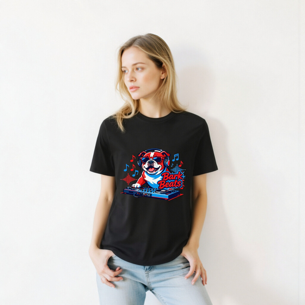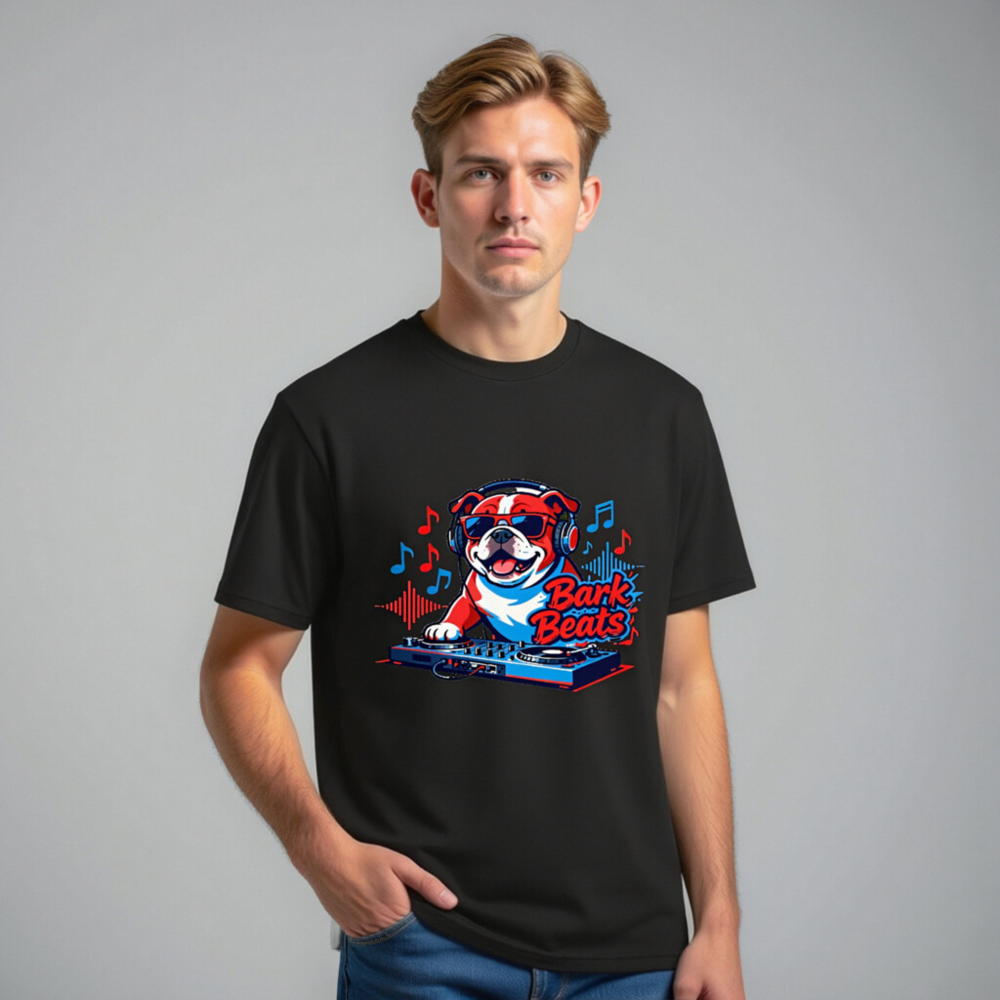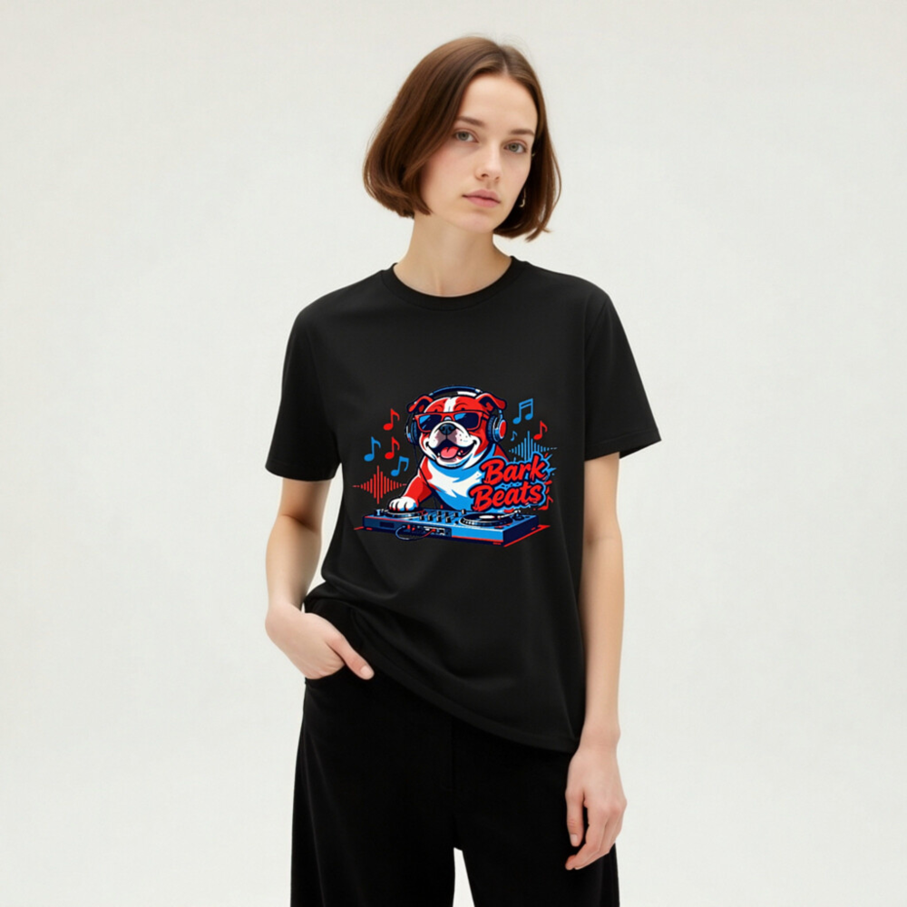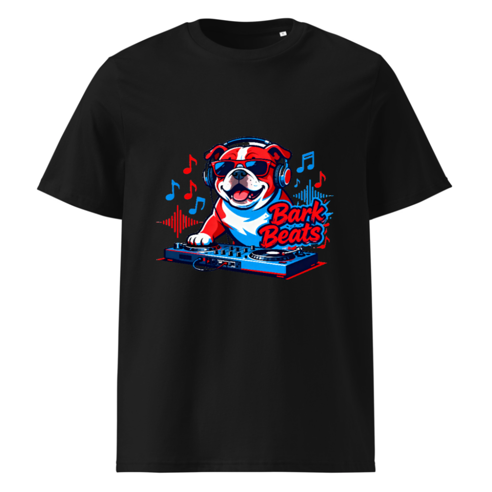 Unisex Organic Cotton T-Shirt | Bark Beats DJ Bulldog Graphic Tee