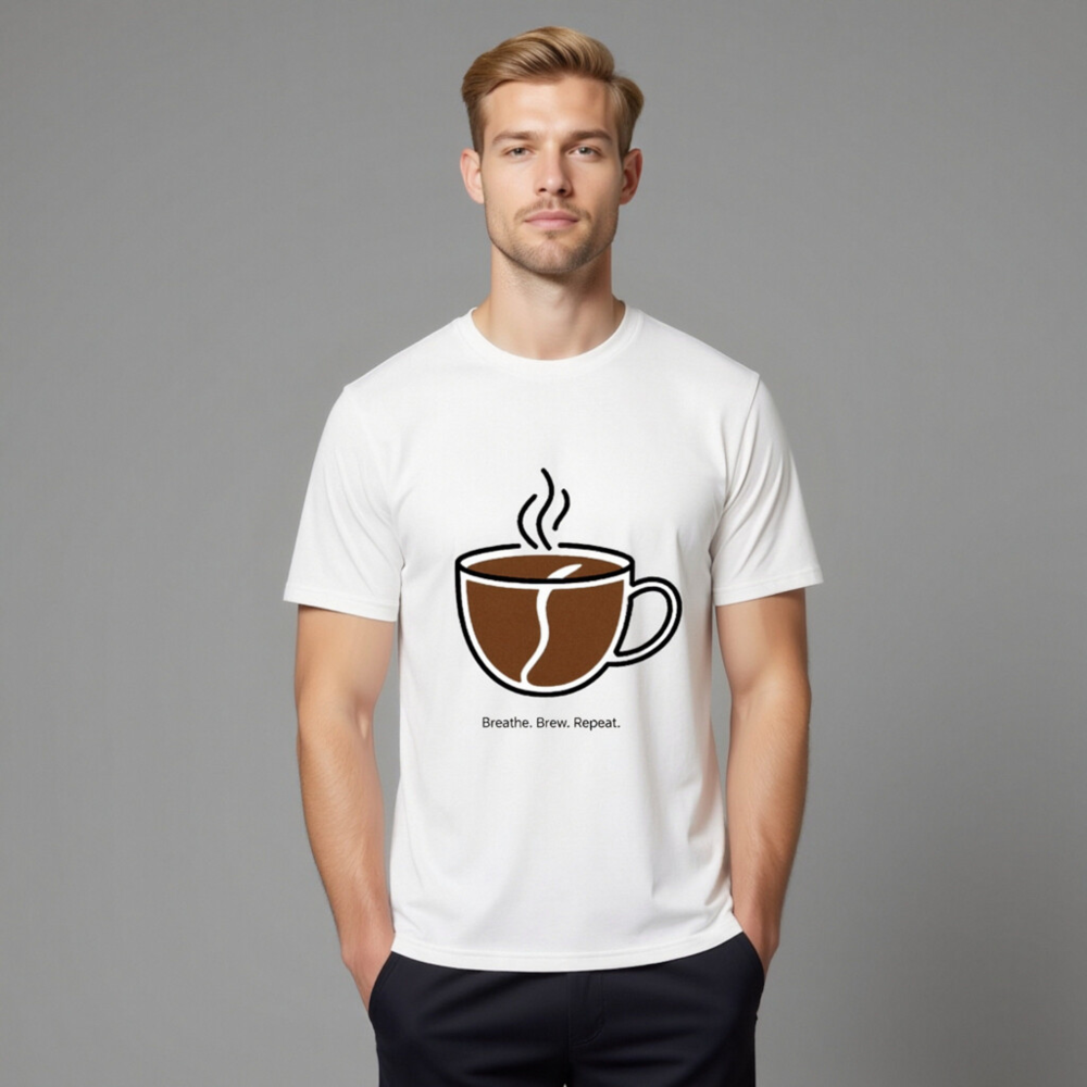 Unisex Organic Cotton T-Shirt | Breathe. Brew. Repeat. Coffee Cup Design