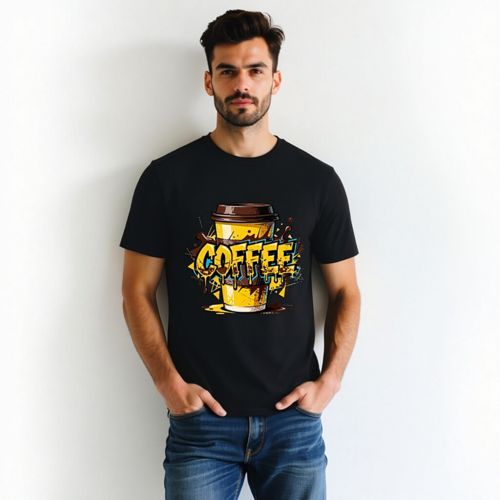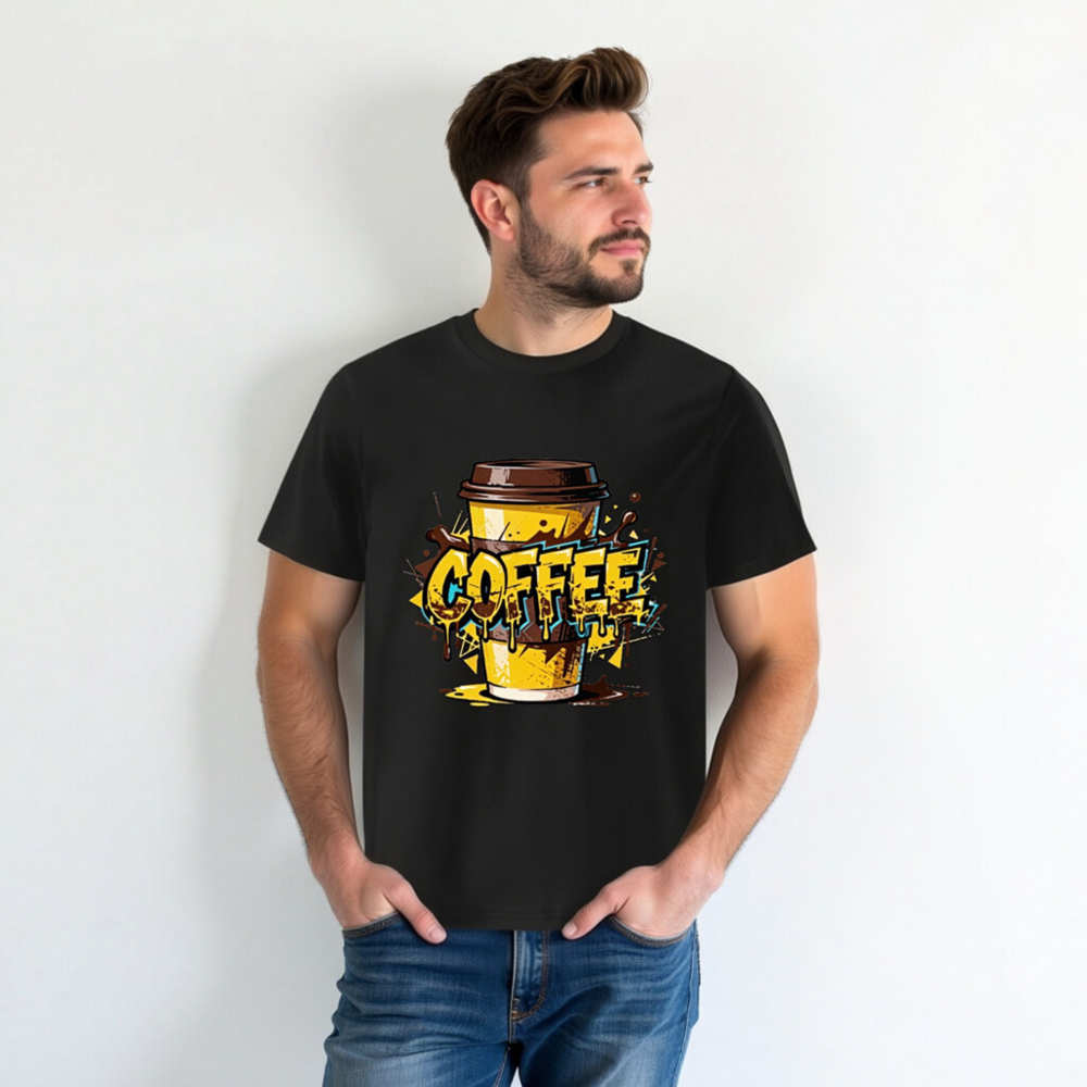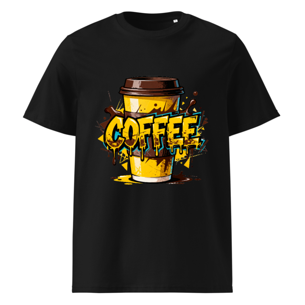 This unisex organic cotton t-shirt features a vibrant, graffiti-style coffee cup design with bold ‘COFFEE’ lettering and dripping effects. Made from certified organic cotton for comfort and sustainability. Perfect for coffee enthusiasts—casual wear with a playful, urban aesthetic. Ideal for everyday use or gifting.