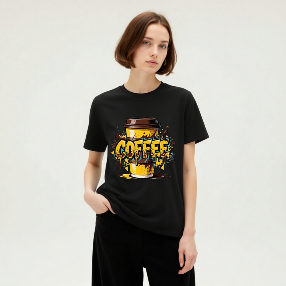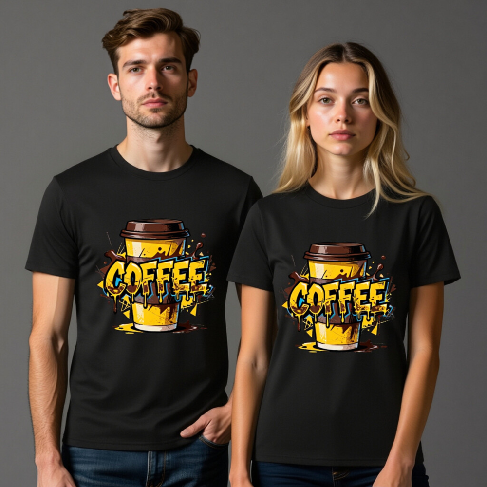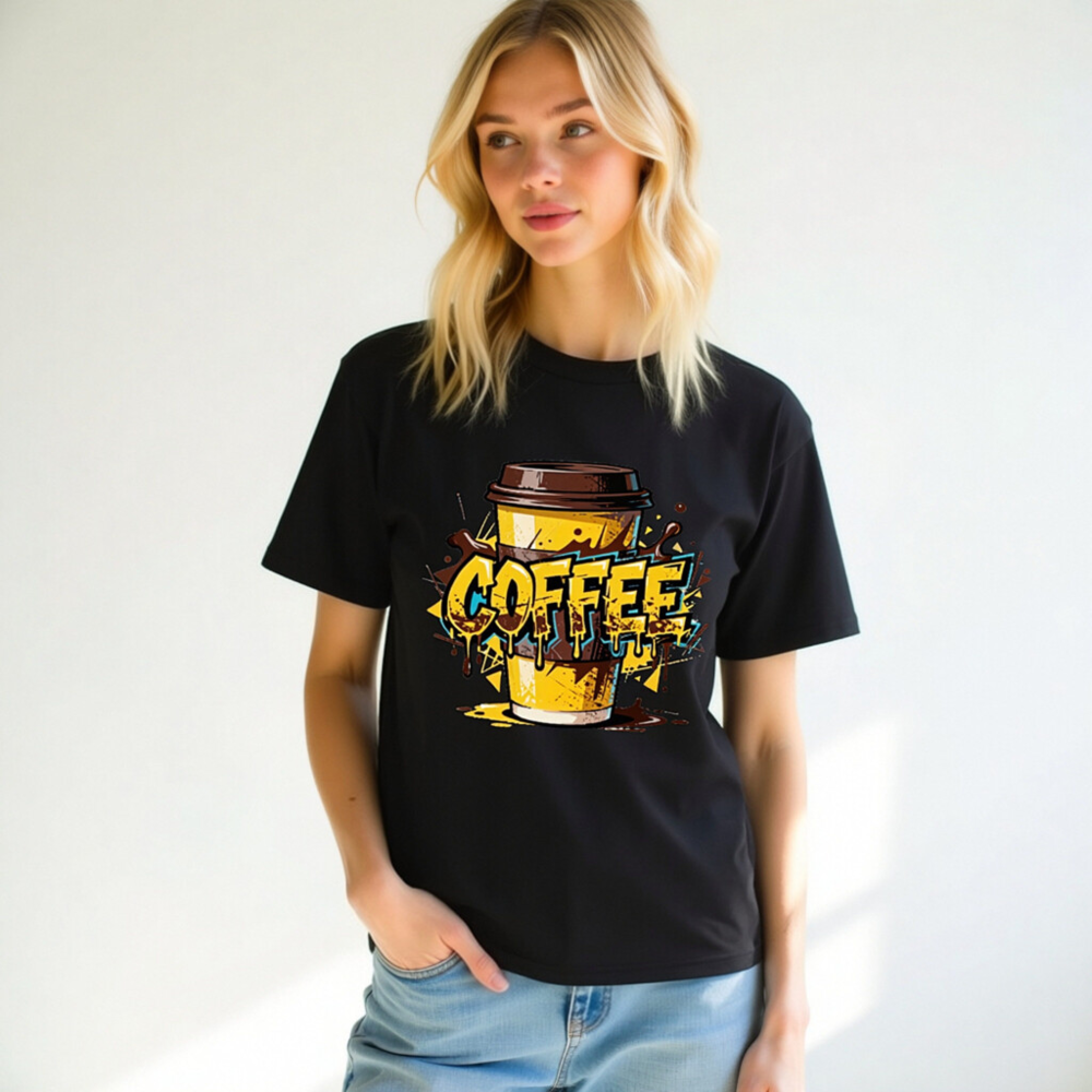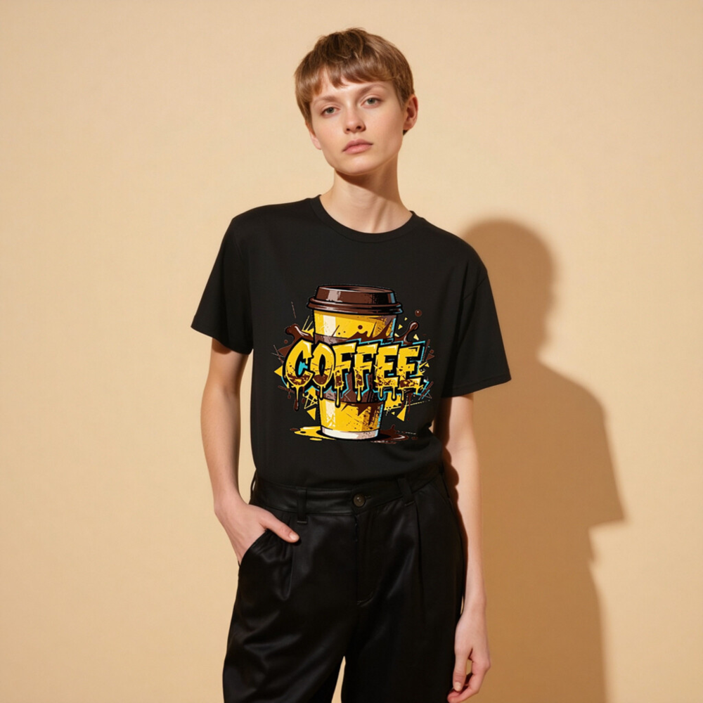 This unisex organic cotton t-shirt features a vibrant, graffiti-style coffee cup design with bold ‘COFFEE’ lettering and dripping effects. Made from certified organic cotton for comfort and sustainability. Perfect for coffee enthusiasts—casual wear with a playful, urban aesthetic. Ideal for everyday use or gifting.