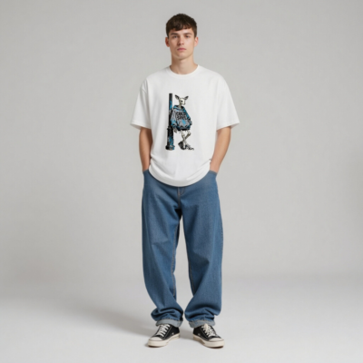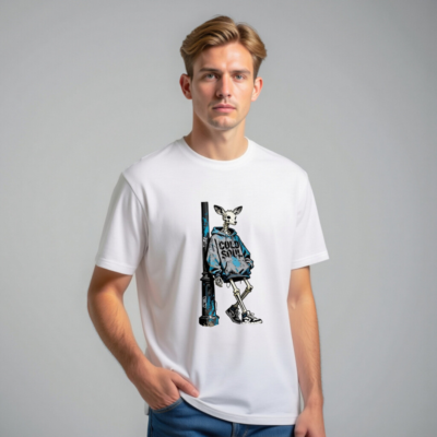 This unisex organic cotton t-shirt features a striking street art design: a skeletal deer in a blue ‘COLD SOUL’ hoodie leaning against a weathered pole. Made from certified organic cotton, it offers soft comfort and eco-conscious style. Ideal for urban fashion lovers seeking bold, artistic statements with sustainable values. Perfect for casual wear or as a conversation-starting gift.