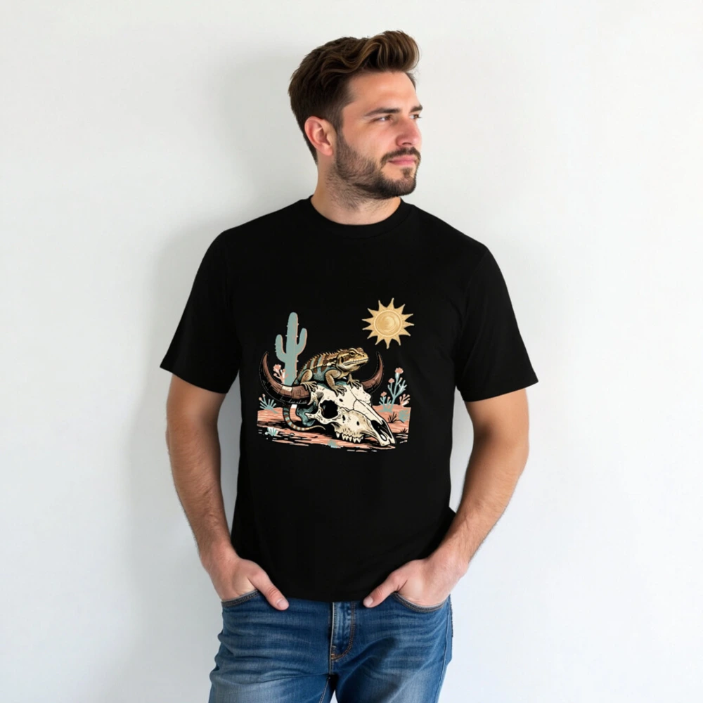 Unisex Organic Cotton T-Shirt – Desert Lizard on Bull Skull Graphic